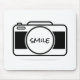 Rabisco preto-e-branco com texto de "sorrir" na lente. O texto pode ser editado.