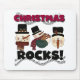 Três homens de neve, notas musicais, e texto que lê as Rochas de Natal nas design de Natal, camisas de neve, capuzes, canecas, cartões, adesivos, t-shirts, sacos de tote, e muito mais.