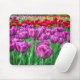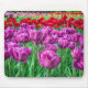 Um campo de tulipas vibrantes, coloridas do rosa, do vermelho, as pretas e as amarelas no primavera.