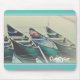 Mat personalizado do rato de canoagem. A design mostra três canoas e tem espaço para o nome da canoísta. Um aniversário de excelente ou presente de Natal para um fã de esportes aquáticos. Imagem tirada em Bude, Cornwall, Reino Unido.