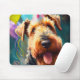 Mousepad Cão Airedale com chapéu de aniversário e balões