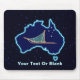 Um cachorro trenou com um saco de trenó e a Cruz do Sul sobrepôs-se a um mapa azul da Austrália. Tudo num fundo estrelado. Quem teria mordido? Mudando de cabeça para baixo em Oz; às vezes até mesmo na neve. O trenó de cachorro é bastante popular na Austrália. No Monte Hotham em Victoria há uma grande corrida todos os anos.