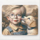 Um garotinho chorão vestindo macacões e óculos está sendo lambido por um filhote de ouro