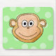 Uns desenhos animados da cara do macaco em um teste padrão dotty verde. Uma imagem animal bonito.