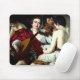 Caravaggio o tapete do rato dos músicos. Pintura a óleo em canvas desde 1595. Uma das pinturas as mais impressionantes de Caravaggio, os músicos caracteriza quatro meninos novos que preparam-se para jogar seus instrumentos antes de uma mostra. Um ajusta um alaúde quando outro sentar a vista sobre uma contagem da música ao lado de seu violion. Outro olha sobre quando um músico no fundo escolher uvas verdes para um petisco. Um presente bonito para fãs de Caravaggio, da arte barroco, das pinturas do músico, e da música art.