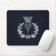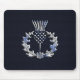 Um cromo de prata como o design escocês do applique do cardo em um fundo atrevido do impressão do estilo da fibra do carbono dos azuis marinhos para um grande presente feito sob encomenda da pele do dispositivo.