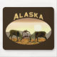 Dois touros de renas lutam durante a corrida de outono no extremo norte enquanto o sol se põe no fundo. A leitura de texto "Alaska" também é exibida.