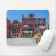 Pintura da praça de Veneza. Carrinho com caixas no meio da antiga praça italiana com edifícios coloridos em Veneza, Itália. Correio, serviço de entrega em Itália. Caixas deixadas sozinhas.