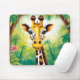 Girafa de desenho animado com plantas, árvores e flores vibrantes da selva
