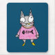 Este gatinho de desenho animado é uma criatura divertida e peculiar com uma personalidade divertida e leve. O gato tem olhos malvados que estão constantemente mudando e batendo, dando a ela um olhar enérgico e malicioso. Ela está vestindo calçados amarelos e um vestido rosa brilhante que tem um design único e atraente na frente. Ele apresenta uma silhueta de um esqueleto de peixe preto, acrescentando um toque inesperado de escuridão à sua aparência alegre. Arte de desenho original de Taylor Addams.