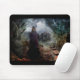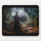 A boa vinda a minha casa maldita, entra se você ousa! Ilustração macabramente, gótico do horror de um espírito assustador em uma floresta escura com uma gárgula, cogumelos estranhos e corvos. Grande presente para o Dia das Bruxas