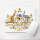 Casaco da Austrália. O casaco de armas da Austrália é o símbolo oficial da Austrália. O escudo é o ponto focal do casaco de armas, contido no seu crachá de cada estado australiano. O canguru Vermelho e a Uem que apoiam o escudo são os emblemas animais não oficiais da nação. Ao fundo está a coroa do Ouro Wattle, o emblema floral nacional oficial.