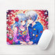 Casal de anime bonito cercado por corações e flores. As cores utilizadas são vermelho, roxo e azul. Fofo para Dia de os namorados ou aniversário ou qualquer ocasião romântica.