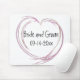 Personalize o Mousepad de Casamento Coração Rosa-Abstrato, bonito e contemporâneo, com os nomes pessoais da noiva e do noivo e a data específica da cerimônia de casamento. Crie um favor do partido personalizado ou guarde um presente. Este bonito tapete nupcial de rato personalizado apresenta um design cardíaco de arte fractal rosa, criado digitalmente, moderno, com fundo branco.
