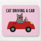 Gato vestindo óculos de sol vermelhos dirigindo um carro vermelho