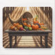 A ginger cat nestled within a beautiful Thanksgiving cornucopia, surrounded by the warm glow of a sunlit rustic barn, creates an enchanting scene that embodies the spirit of gratitude and abundance