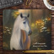 Mousepad com pintura de cavalo em uma floresta encantada. Um conto de fadas como cena...