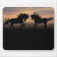Um belo par de cavalos selvagens dançando juntos seus homens e rabos soprando no vento. Estes cavalos fríésios têm fezes peludas de cabelos longos. O cenário de fundo é uma paisagem colina vista durante um pôr do sol brilhante do ouro. Uma imagem que seria interessante para amantes de cavalos de todos os tipos.