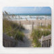 Vista calma de uma praia quieta completa com as dunas de areia, a aveia do mar e o Oceano Atlântico.