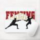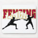 Um design de cerco astucioso que caracteriza as silhuetas de dois esgrimistas contratou em um fósforo.