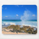 A água bonita da cerceta que deixa de funcionar em uma mistura de rochoso e do Sandy Beach e que projeta-se para cima para o céu azul profundo. Vista de relaxamento a enviar para trás em um cartão a um membro da família, ao amigo ou a um amado. Você pode quase ouvir as ondas deixar de funcionar e gotejar de volta à terra a toda hora. Pensar, por que sou eu não lá agora?