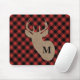 Um mousepad que caracteriza um teste padrão vermelho e preto da xadrez da herança (búfalo). O centro caracteriza uma ilustração inspirada serapilheira de uma silhueta da cabeça de 8 cervos do fanfarrão do ponto. Personalize a inicial em cervos.