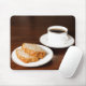Uma imagem fotográfica de uma chávena de café agradável com algum pão de banana a comer? Vem com as palavras e o convite para da "o chá manhã… qualquer um?"