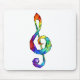 Poligonal, arco-íris, chave musical brilhante sobre fundo branco. Tatuagem de polígono.