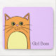 Vestir seu espaço de trabalho com este lindo mouse pad, com um gatinho laranja desenhado à mão esperando para tocar com o mouse do seu computador. O texto diz "Menina Chefe"
