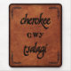 Use este mousepad de couro utilizado ferramentas falso e mostre seu orgulho Cherokee. É nervoso e muito mais fácil tomar de do que o couro real. A palavra CHEROKEE aparece em letras inglesas, Cherokee, e na pronunciação Cherokee.