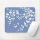 Silhueta branca de cerejeiras floridas e borboletas contra um belo fundo azul. O azul e branco suave fará deste seu design favorito.