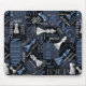 É a tua jogada! Este design de mouse original em homenagem ao jogo clássico de xadrez apresenta a terminologia do jogo junto com gráficos atraentes de peças de xadrez para completar o padrão. O esquema não tradicional de prata e cor azul dá a esse padrão uma visão mais moderna e contemporânea. Um plano de fundo sutil imita um tabuleiro de xadrez sem estar muito na sua cara. Procure ID784 para ver o intervalo completo de cores e produtos adicionais com este design.