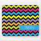 Este mouse pad apresenta um padrão zigzag preto-de-fenda com verde-claro, laranja, amarelo, rosa, azul e roxo brilhante. O texto personalizado permite personalizar com seu nome.