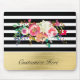 Placa Dourada Branca de Mouse Chic Elegante com Glama Floral Moderno e Branco Preto
