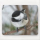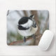 Preto pequeno bonito o chickadee tampado senta-se em uma árvore do louro de montanha, apronta-se para que o primavera chegue. Totalmente customizável para que você personalize como você por favor!