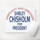 Esta reprodução é 1972 botão baseado da campanha para Shirley Chisholm, primeira mulher do afro-americano a funcionar para o presidente.