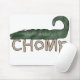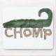 Um design do jacaré com texto que lê "CHOMP" em t-shirt do jacaré, em ímãs do jacaré, em etiquetas, em cartões, em canecas, e em mais.