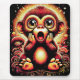 Uma representação vibrante de um macaco chocado com olhos largos e uma boca aberta é rodeada por padrões e estrelas brilhantes e giratórias. Cores negros e detalhes intrincados criam uma composição impressionante e energética.
