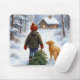 Mousepad Christmas Boy Dragging an Evergreen Tree Home
