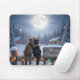 Mousepad Christmas Cats Embracing On a Snowy Fence
