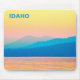 Um pôr do sol cor-de-rosa e dourado no lago Pend Oreille (Sandoint, ID), com as montanhas circundantes sob vários tons de azul. As águas do lago também são ouros. As cores intensas foram o resultado de fumaça derivada de incêndios florestais no leste de Washington. Para além da cor rosa-do-salmão no céu, o lago é habitado por Kokanee, um Salmão Sockeye (Oncorhynchus nerka), que se encontra em terra. O texto personalizável que lê "IDAHO" também é exibido.