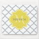 Mousepad Cinza Branca Quatrefoil Amarelo Nome Monograma