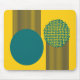 Este mouse pad tem um médio de círculos modernos do século design com linhas saindo deles em preto e verde num campo de ouro.