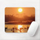 Impressionante e romântico vista cênica de cisnes na silhueta num lago ao nascer do sol.