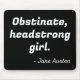 Obstinada, garota forte. Jane Austen cita o livro Orgulho e Preconceito.