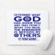 Em azul democrata, as palavras de Sto. Tomás de Aquino, "Determine o que Deus lhe deu e tome dele o que você precisa, o restante é necessário para os outros." Design influenciado pela Esquerda Cristã.