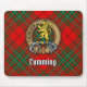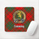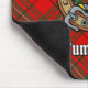 Crachá da crista de Clan Cumming rodeado por uma precinta e fivela sobre fundo de tartã. Custom Text.