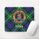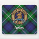 Crachá da crista Clan Forbes rodeado por uma correia e fivela sobre fundo tartano. Custom Text.