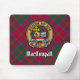 Crachá da crista Clan MacDougall rodeado por uma correia e fivela sobre fundo tartano. Custom Text.