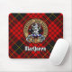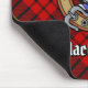 Crachá da crista do Clan MacQueen cercado por uma pulseira e fivela sobre fundo de tartã. Custom Text.